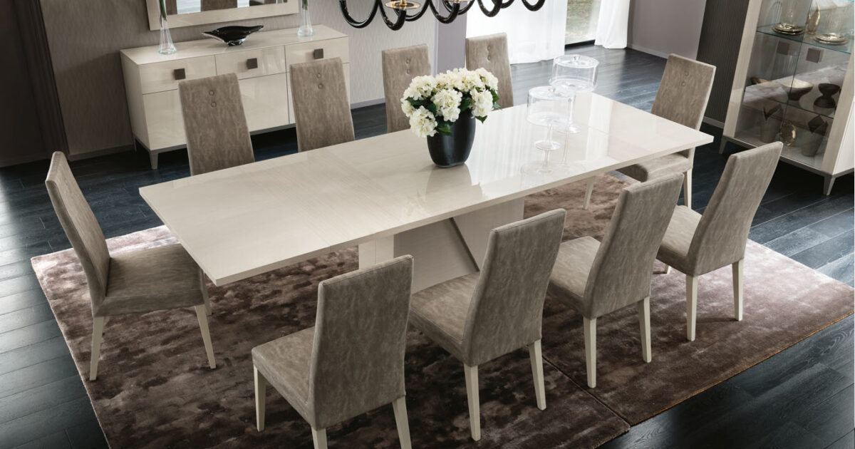 Belarus High Gloss Ext Dining Table Cream & Stone